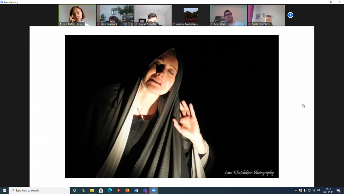 IIAU ir IIIAU kl. gimnazistai su režisiere ir aktore B. Mar virtualiai vaikščiojo po Antikos amfiteatrus, kalbėjosi apie dievų numylėtinį Sofoklį ir jo herojiškąją Antigonę, XXI amžiuje įgyjančią modernių interpretacijų, apie žmogiškumą naikinančią minią, šlovinančią tuščiagarbį Kreontą.... Mokytojos G. Morkūnienė ir I. Vainorienė
