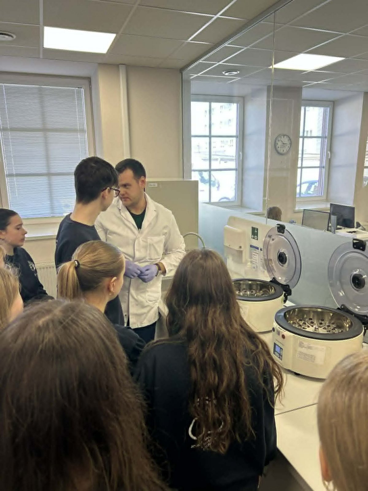 Mokiniai stebėjo, kaip atliekami kraujo tyrimai, kaip išskiriami jo komponentai, susipažino su realiomis darbo sąlygomis ir biotechnologijų specialistų veikla.